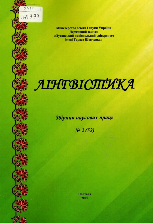 Лінгвістика : зб. наук. праць / Засновник ДЗ "Луган. нац. ун-т ім. Тараса Шевченка" ; гол. ред. К. Д. Глуховцева. – Луганськ : Альма-матер; Старобільськ : ДЗ ЛНУ ім. Т. Шевченка, 2025. – № 2 (52). – 148 с.