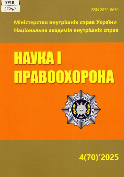Наука і правоохорона = Nauka i pravookhorona : наук. журн. / Засновник Держ. НДІ МВС України ; гол. ред. В. О. Криволапчук. – Київ : ДНДІ МВС України, 2025. – Вип. 4 (70). – 257 с.