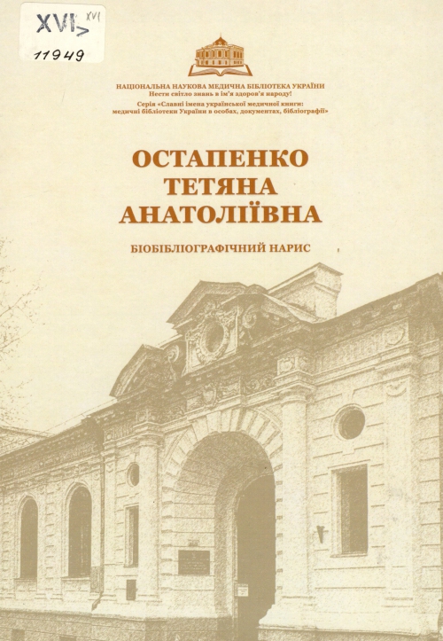 Остапенко Тетяна Анатоліївна : біобібліограф. нарис / Нац. наук. мед. б-ка України ; авт.- упоряд. Світлана Булах, Олена Кірішева, Світлана Науменко ; ред. Наталія Бортнік ; автор ідеї Олена Кірішева. – Київ : Коляда О. П., 2025. – 191 с. : портр., фотоіл. кольор. – (Славні імена української медичної книги: медичні бібліотеки України в особах, документах, бібліографії).