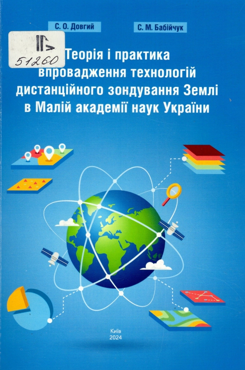 Довгий С. О. Теорія і практика впровадження технологій дистанційного зондування Землі в Малій академії наук України : монографія / Станіслав Олексійович Довгий, Світлана Миколаївна Бабійчук ; Нац. акад. наук України, Нац. центр "Мала академія наук України". – Київ : Нац. центр "Мала академія наук України", 2024. – 454 с. : іл.