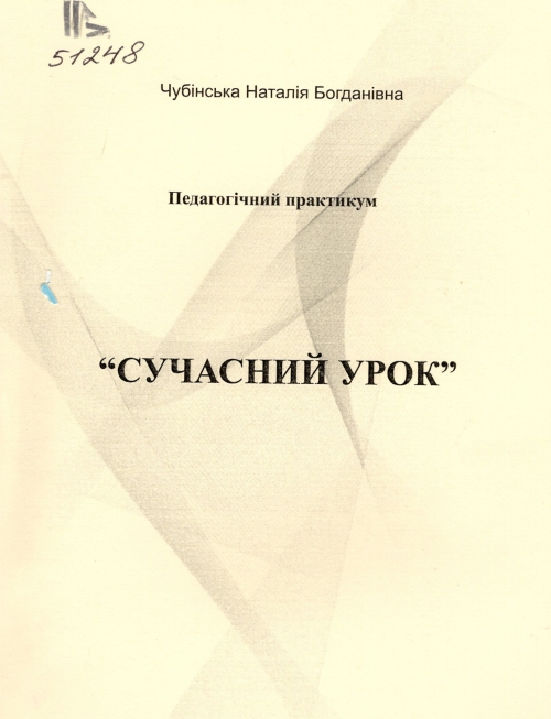 Чубінська Н. Б. Педагогічний практикум "Сучасний урок" / Наталія Богданівна Чубінська. – Львів : Левада, 2024. – 143 с. : іл. – Сучасний урок.