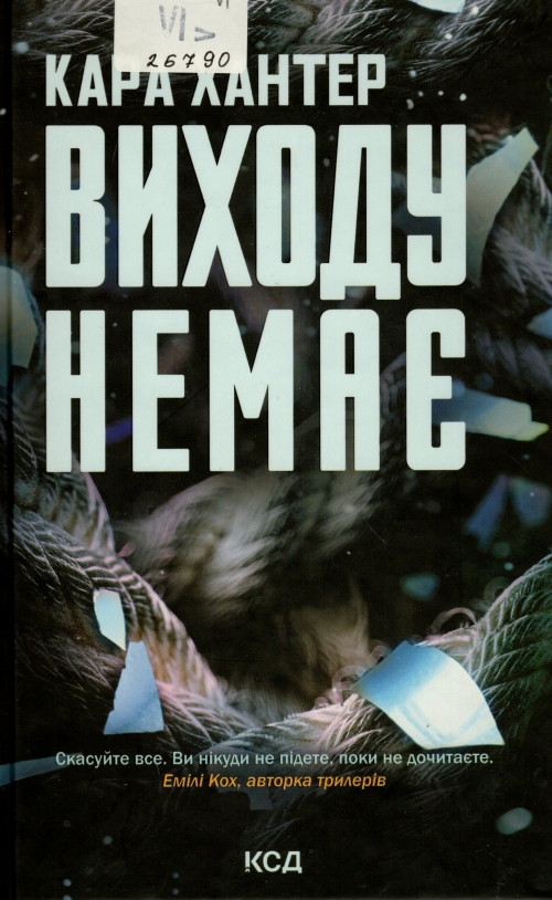 Хантер Кара. Виходу немає : роман : пер. с англ. / Кара Хантер ; пер. Олександр Руденко. – Харків : Книжковий Клуб "Клуб Сімейного Дозвілля", 2024. – 379, [1] с. : іл. – (Інспектор Адам Фоулі; кн. 3).