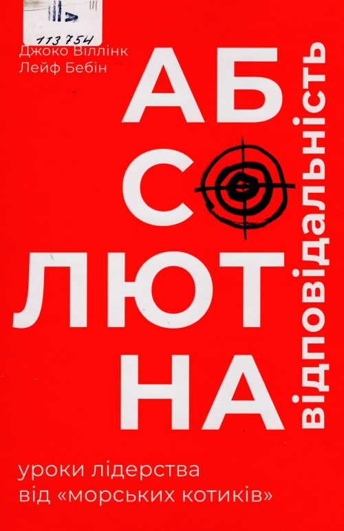 У цій книзі — «Абсолютна відповідальність. Уроки лідерства від морських котиків» — Джоко Віллінк та Лейф Бебін, автори, для яких «дисципліна» не просто слово, а спосіб життя — пояснюють основні принципи керування роботою і командою, радять ефективні фішки для планування успішних стратегій та діляться лайфхаками, які допоможуть вам подолати стрес. Загалом, це книжка про лідерські принципи в умовах найбільш непередбачуваних змін, що буде корисним усім керівникам, в незалежності від сфери діяльності.