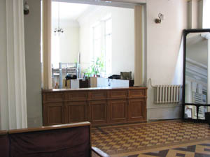 Знаходиться на першому поверсі Бібліотеки, праворуч від пункту контролю, по аванзалу вниз сходами.