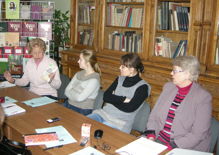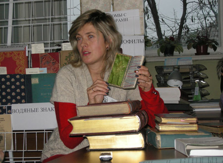 Вона також дала консультації та провела практичне заняття. Детально було розглянуто особливості структури, використовуваних матеріалів і елементів та способів оформлення бібліофільських високополіграфічних видань, що надають їм ексклюзивності. До таких, зокрема, належить «Шовковий молитовник» із фонду ОННБ – французьке видання 1887 року із колекції графа Толстого, яких у світі залишилося дуже мало. Подібним книжкам, їх особливостям, присвячуються спеціальні дослідження, розраховані у першу чергу на бібліофілів. Виступ бібліотекаря підкріплювала візуальна електронна презентація (текст виступу).