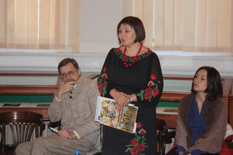 Книжки від бібліотеки вручає завідувач відділу звязків з громадськістю і реклами Тамара Кухарук.