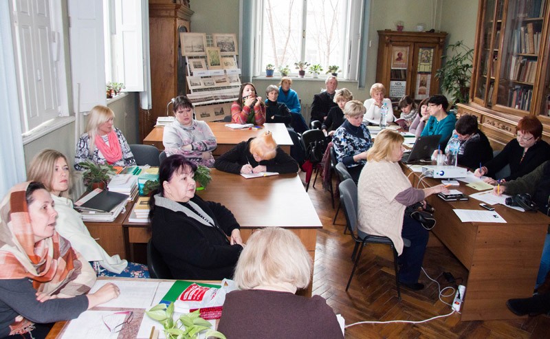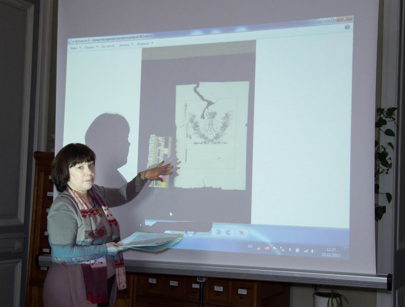 Модератор семінару Ліна Арюпіна презентувала видання "Експертиза цінності документальних памяток", примірники якого були подаровані для регіональних бібліотек