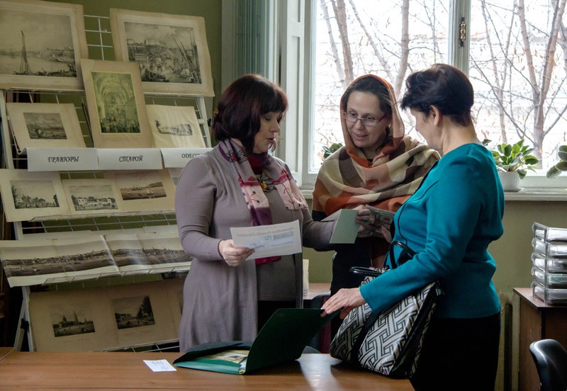 Огляд виставки "Грав`юри старої Одеси" провела Лариса Іжик (у центрі)