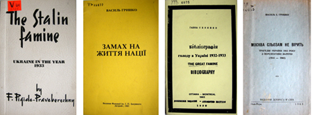 Перші книги з’явились у 1952 – 1953 роках. Одна з них – книга Дмитра Соловія «Стежка на Голготу: винищення в Україні мільйонів людей терором та штучним голодом у 1929-1933 роках», з переднім словом Матвія Стахіва, видана у Нью-Йорку, Детройті та Скрентоні у друкарні «Народної Волі» в 1952 році.