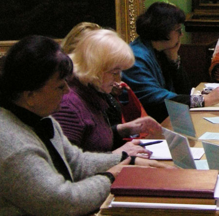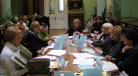 У роботі засідання взяли участь: Ольга Бєльницька, заступник генерального директора ОННБ ім. М. Горького з бібліотечної роботи, заслужений працівник культури України, Ліна Арюпіна, заступник генерального директора ОННБ ім. М. Горького з наукової роботи, Валентина Райко, завідувач відділу рідкісних видань та рукописів ОННБ ім. М. Горького, Тетяна Гоголіна, головний бібліотекар відділу рідкісних видань та рукописів ОННБ ім. М. Горького, Наталя Зеленська, завідувач відділу рідкісних і цінних документів Кіровоградської обласної універсальної наукової бібліотеки ім. Д.І. Чижевського, Лариса Трегуб, завідувач відділу науково-дослідної роботи з рідкісними і цінними виданнями Миколаївської обласної універсальної наукової бібліотеки ім. О. Гмирьова, Ольга Сак, завідувач відділу рідкісних та цінних видань Херсонської обласної універсальної наукової бібліотеки ім. О. Гончара, Ірина Довганюк, завідувач сектора роботи з рідкісними і цінними виданнями Одеської обласної універсальної наукової бібліотеки ім. М.С. Грушевського, Тетяна Черних, завідувач відділу рідкісних і цінних видань Запорізької обласної універсальної наукової бібліотеки імені О.М. Горького, Оксана Колоколова, завідувач відділу рідкісної книги Кримської республіканської установи Універсальна наукова бібліотека ім. І.Я. Франка, Галина Устюжаніна, завідувач науково-методичного відділу Одеської національної наукової бібліотеки імені М. Горького, а також завідуючі відділів ОННБ, у фондах яких зберігаються рідкісні видання.