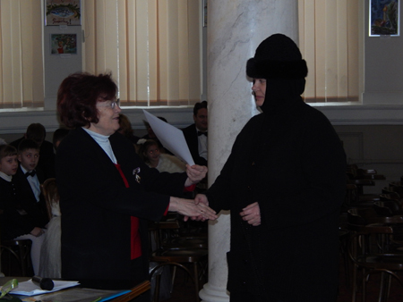 Подяку від Міністерства культури України одному із засновників «Галереї» ігумені Серафимі – настоятельки Свято-Архангело-Михайлівського жіночого монастиря, вручає генеральний директор ОННБ Ольга Ботушанська.