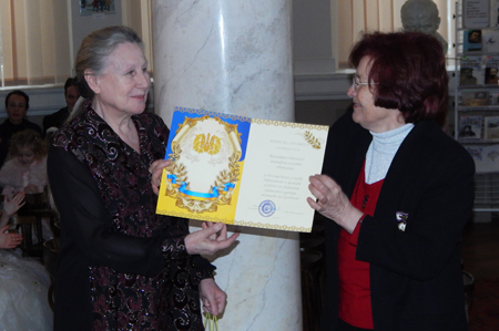 вручає генеральний директор ОННБ Ольга Ботушанська. Ансамбль солістів «Ренесанс» діяв під патронатом Валерія Мазуріна