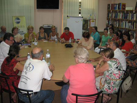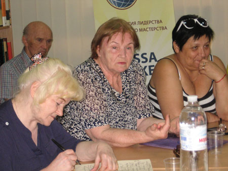 Ідею О.В.Афоніна підтримали учасники «круглого столу». У виступах Галини Дольник, приватного підприємця; Галини Лазаревої, директора ЦБС для дітей м. Одеси (на фото у центрі); Валентини Левчук, оглядача з питань культури газети «Вечерняя Одесса»; Тетяни Іванової, читачки бібліотеки, психолога, звучали пропозиції про захист національного книговидавництва, про необхідність активніше залучати до читання дітей і підлітків, здійснювати моніторинг читання та книжкової продукції та ін.