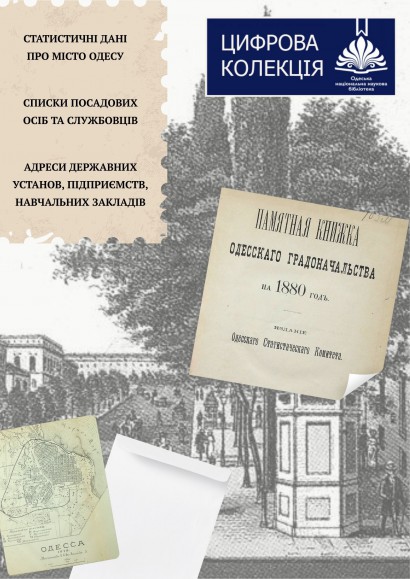 Памятная книжка Одесского градоначальства на 1880 год / изд. Одесского статистического комитета. – Одесса : тип. Л. Нитче, 1879. – 310 с., 1 арк. пл. : табл.