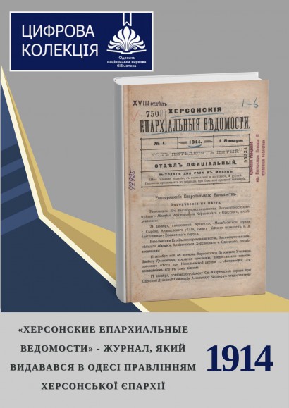 «Херсонские епархиальные ведомости» - журнал, який видавався з 1860 по 1919 р. в Одесі правлінням Херсонської єпархії. Це християнське православне видання становить величезну цінність як основне друковане джерело інформації про Православну церкву та православне населення Херсонської губернії, до складу якої входила територія нинішньої Одеської області.