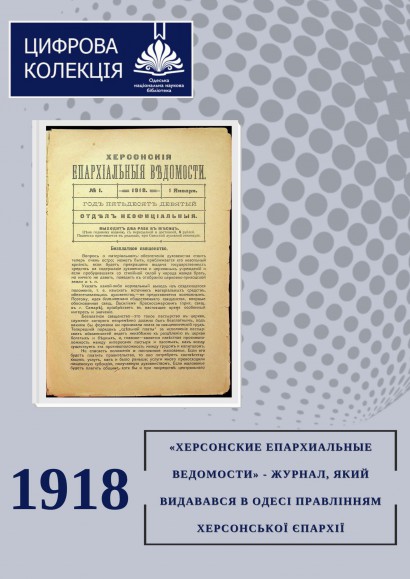 «Херсонские епархиальные ведомости» - журнал, який видавався з 1860 по 1919 р. в Одесі правлінням Херсонської єпархії. Це християнське православне видання становить величезну цінність як основне друковане джерело інформації про Православну церкву та православне населення Херсонської губернії, до складу якої входила територія нинішньої Одеської області.