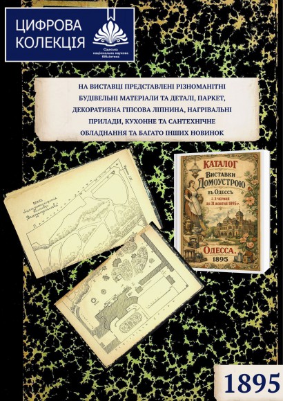 Виставка відбувалася з 3 червня до 31 жовтня 1895 р. та займала весь простір міського будинку на вул. Софіївській (колишній палац Наришкіних, Міський музей красних мистецтв, нині Одеський національний художній музей) та територію навколо – двір і сад. Свою продукцію експонували вітчизняні та європейські фірми. Були представлені різноманітні будівельні матеріали та деталі, паркет, декоративна гіпсова ліпнина, нагрівальні прилади, кухонне та сантехнічне обладнання та багато інших новинок. В художньому відділі брали участь відомі одеські художники С.Я. Кишинівський, М.Л. Молінарі, І.П. Паоліні, Б.В. Едуардс. Каталог доповнений трьома кресленнями: плани першого та другого поверхів палацу та план розміщення виставки навколо будівлі, від вул. Софіївської до вул. Приморської.