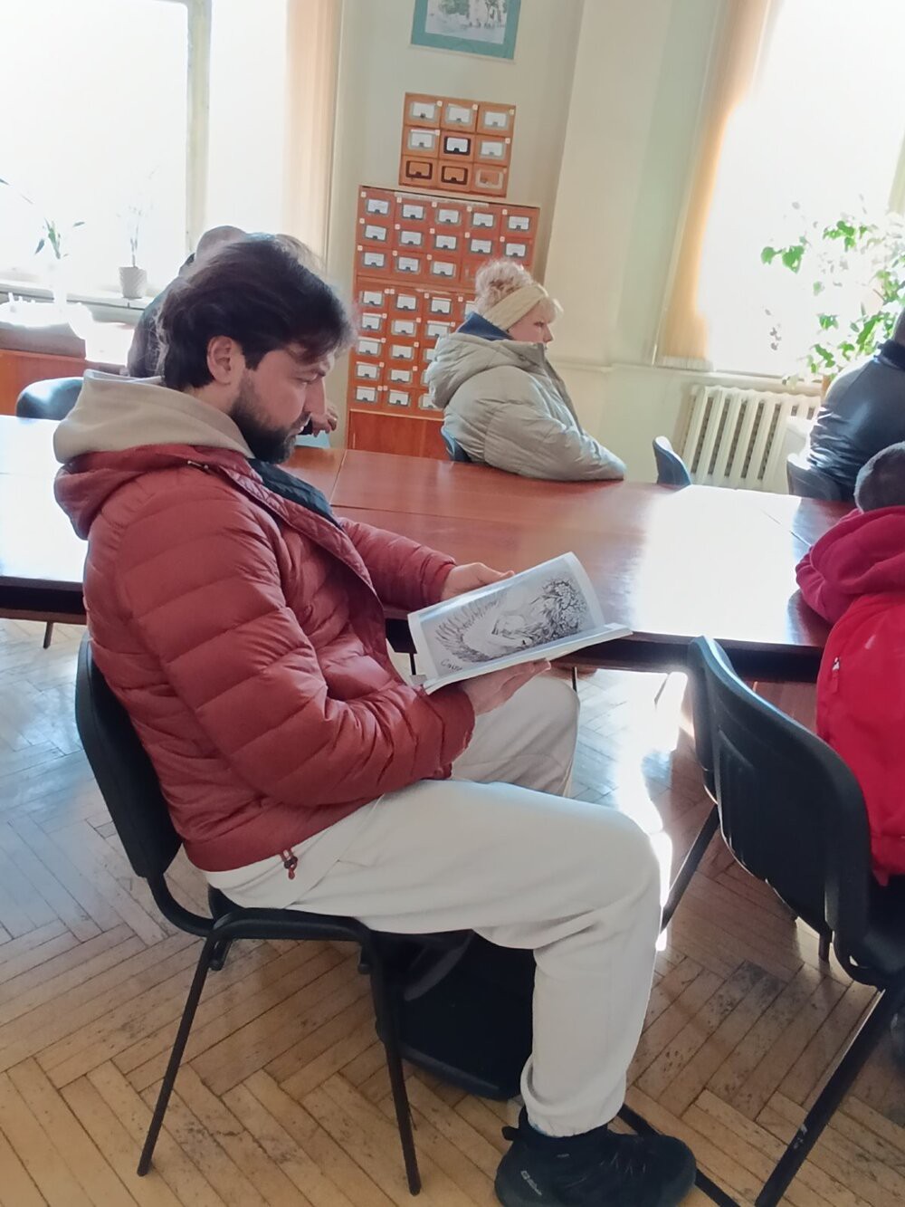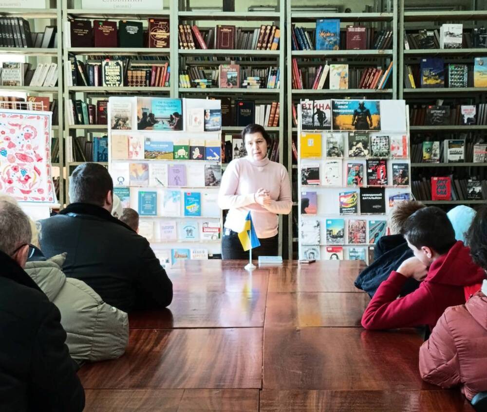 Бібліотекарки провели екскурсію виставкою, розповідаючи про незламність українського народу у боротьбі. Окремий розділ виставки був присвячений першим дням вторгнення - як українці мобілізувалися, як міста і села чинили опір, як люди допомагали армії та одне одному. Представлено було також хронологію ключових подій війни, історії героїв-захисників, щоденники та спогади тих, хто пережив окупацію та бойові дії.