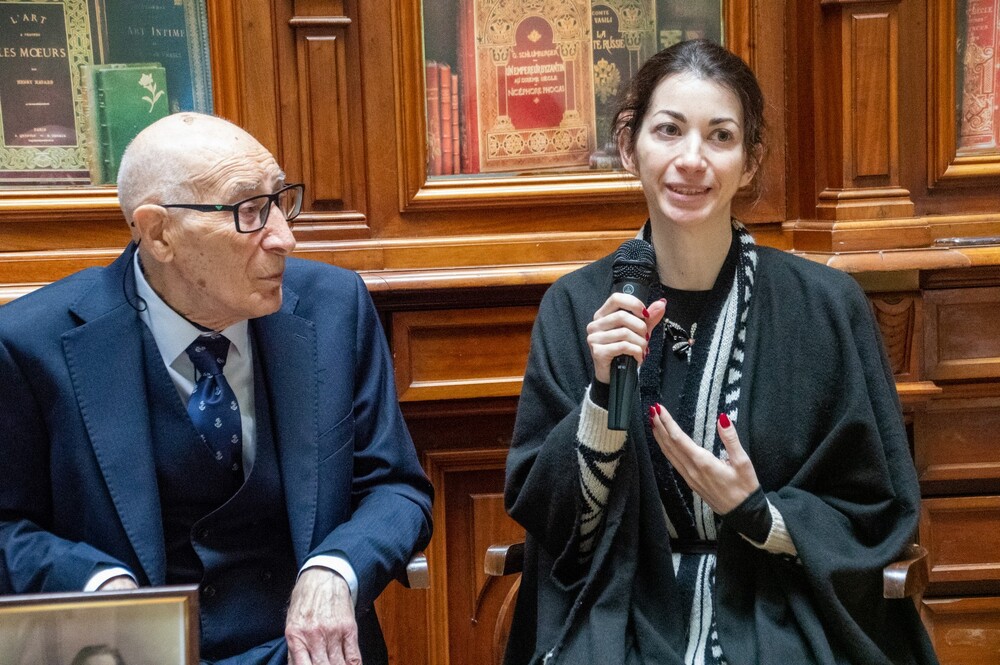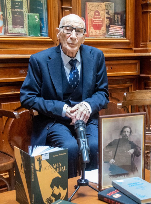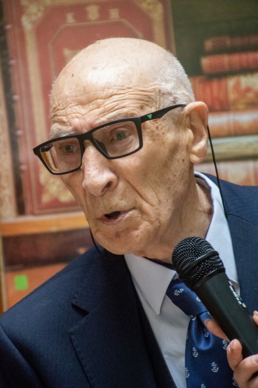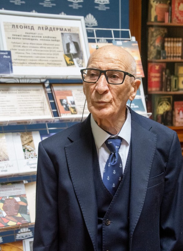А ось і довгоочікувана промова переможця. Леонід Лейдерман – лауреат премії імені Шолом-Алейхема 2025 року, не дивлячись на поважний вік, елегантний, підтягнутий і, звісно, не без гумору: «Ви бачите перед собою вже немолоду людину, проте мушу зауважити, що я… молодий письменник. Перша збірка моїх оповідань вийшла 2014 року, а «Кохана вийде» побачила світ 2024-го. А почалося все з того, що одна читачка з Дніпра надіслала мені листа, в якому розповіла, що моє оповідання «Рівчек», яке увійшло до цієї збірки, читала своїй мамі і мама плакала. Тож вона порадила мені надіслати свої оповідання до Комітету з премії імені Шолом-Алейхема. Так я дізнався про цей конкурс, бо раніше не чув про нього. А у мене вже вийшла повість і я її надіслав до Києва. Наступного року я отримав подяку за участь у конкурсі з побажаннями подальших успіхів. Але настало 24 лютого 2022 року. Як ви пам’ятаєте, хтось передбачав цю навалу, маючи на увазі 2014 рік, хтось ніколи не чекав від москви нічого доброго, хтось вважав це зрадою пам’яті загиблих у боях 1941–1945 років з іншими загарбниками. Але усі зрозуміли – це війна. Війна, яку Європа вже забула, війна 21-го століття, яка відзначається дуже потужним рівнем науки і техніки, тож було над чим замислитися. Тоді я написав оповідання, воно мало форму листа, в якому письменник-аматор пише своєму колезі – Шолом-Алейхему. Це було оповідання «Лист у сусіднє століття», я надіслав його до одеського альманаху «Дерибасівська – Рішельєвська» і отримав від Євгена Михайловича Голубовського відповідь: «Леоніде, беру!». Це оповідання – роздуми про життя та про війну, на тлі вже знайомих нам подій. Згодом було ще два оповідання, які так чи інакше стосувалися війни. Коли були готові три оповідання, я додав до них твори зі збірок минулих років, серед яких і «Рівчека», який змусив плакати маму у Дніпрі, та надіслав їх на минулорічний конкурс. Не скажу, що я сподівався перемогти, це стало для мене дуже приємною несподіванкою. Нещодавно моя онука процитувала Конфуція, що «Щастя – це коло тебе розуміють, ще більше щастя – коли тебе кохають, ще більше щастя – коли ти кохаєш…». Мені приємно, що члени нашого Комітету зробили саме такий вибір, я щиро вдячний Шолом-Алейхему, та дякую за увагу шановному товариству. Слава Україні, вільній у справедливому світі!».