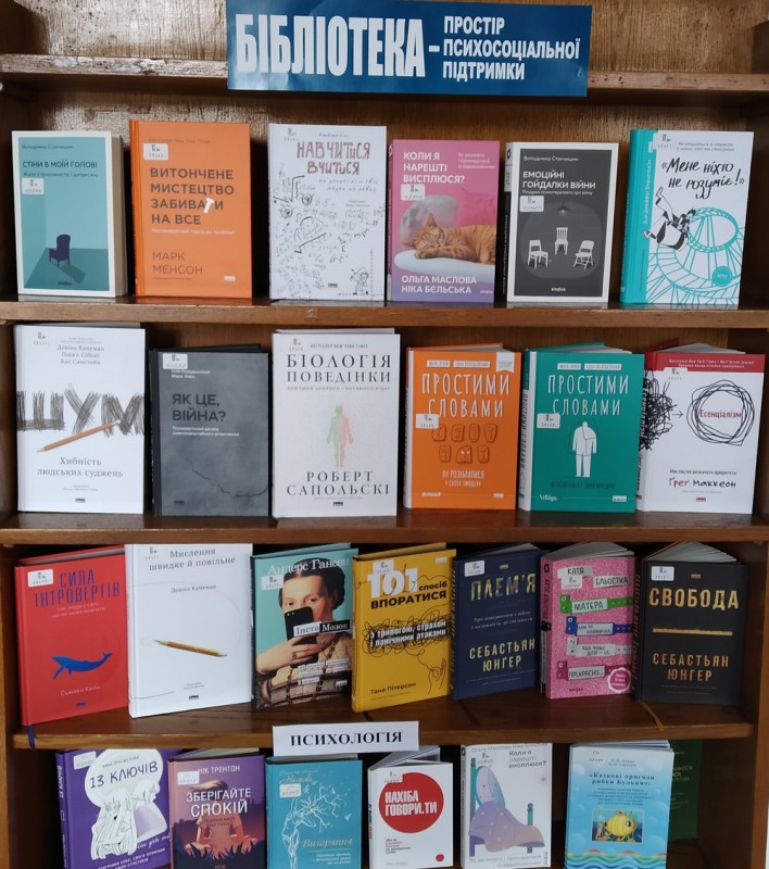 У читальному залі Одеської національної наукової бібліотеки (вул. Акад. Філатова, 1) відкрито тематичну полицю «Бібліотека - простір психосоціальної підтримки», присвячену ментальному здоров'ю. Література полиці актуальна та відповідає світовим дослідженням у сфері психічного здоров’я. Фонд включає науково-популярні книги та практичні посібники з методів психологічної підтримки.