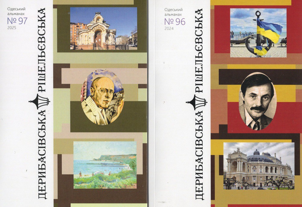 «Дерибасівська – Рішельєвська» : одес. альм. / ред. Ф. Кохріхт, заст. ред.: М. Пойзнер, Э. Радішевська ; редкол.: Є. Голубовський, О. Губар, А. Глущак, Є. Дєменок, І. Ліптуга, А. Михалевська, О. Яворська. – Одеса : ПЛАСКЕ, 2024. – № 96. – 383 с. : іл.; 2025. – № 97. – 383 с. : іл. У двох останніх, дуже насичених випусках видання дещо змінилося, «але не головне: альманах "Дерибасівська – Рішельєвська" перш за все – про Одесу та для одеситів, де б вони (ми) не жили...» (Ф. Кохріхт). Крім традиційних рубрик «Історія, краєзнавство», «Проза», «Поезія», «Мистецтво – життя – мистецтво» та ін., з’являються нові. Вже третій рік поспіль кожен номер за традицією, закладеною Євгеном Голубовським, відкривається рубрикою «Під звуки повітряної тривоги», яка містить навіяні війною вірші та прозу членів літературного клубу «Зелена лампа». |