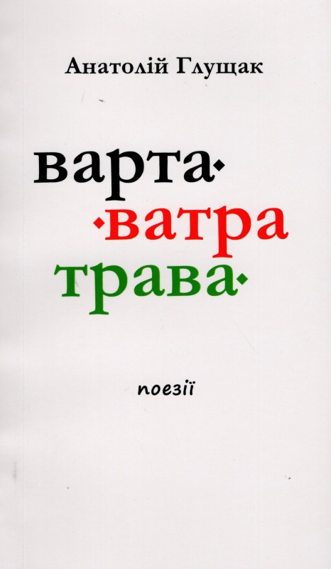 Глущак А.С. Варта. Ватра. Трава : книга присвят, покликів, признань : поезії / Анатолій Глущак. – Одеса : Бондаренко М.О., 2024. – 104 с. Автор книжки – одеський поет, перекладач, журналіст-культуролог, лауреат низки всеукраїнських і муніципальних літературних премій, конкурсу «Українська мова – мова єднання» та конкурсу газети «Вечірня Одеса» «Люди справи». Нагороджений урядовою відзнакою Польщі за внесок у польську культуру та відзнакою «Золота медаль української журналістики». Видав низку збірок власних поезій та перекладів з польської. |