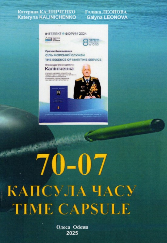 Калініченко К. 70-07. Капсула часу / Катерина Калініченко, Галина Леонова. – 2-ге допов. вид. – Одеса : Студія «Печать», 2025. – 52 с. : іл., [4] с. кольор. іл. – Укр., англ. |