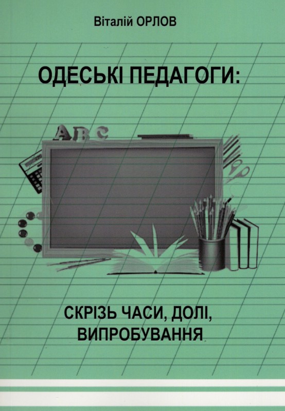 Орлов В. Одеські педагоги: скрізь часи, долі, випробування / Віталій Орлов. – Одеса : Бондаренко М. О., 2025. – 68 с. : іл. У своїй книжці автор, член Національної спілки журналістів України, почесний працівник культури України, викладач французької та англійської мов, перекладач, дослідник історії освіти Одеси та Одещини створив справжній літопис освітянської справи Південної України.