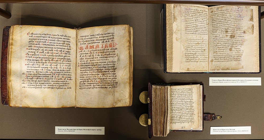 В окремих вітринах була представлена колекція рукописів Національної бібліотеки, документи, що зберігають пам'ять про перші святкування свята святих братів, перше видання тексту офіційного гімну та ноти композитора Панайота Піпкова.