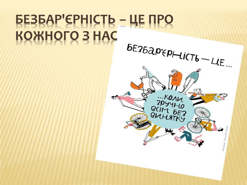 З 19 по 25 травня в Україні вперше проводиться Національний тиждень безбарʼєрності. Ініціатива належить Міністерству культури і стратегічних комунікацій, спільно з Мінрозвитку і Радницею уповноваженою Президента України з питань безбар’єрності та має на меті сприяти формуванню в українському суспільстві культури безбар’єрності через підвищення обізнаності, мотивації до змін та популяризації позитивних прикладів рівності можливостей для всіх суспільних груп. Це стосується кожного з нас, адже, насамперед, йдеться про людяність, рівність, справедливість і взаємопідтримку в нашому повсякденному житті.