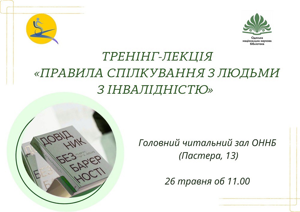 26 травня об 11.00 у рамках Національного тижня безбар’єрності відбудеться тренінг-лекція «Правила спілкування з людьми з інвалідністю» від представників громадської організації «Безбар’єрні».
