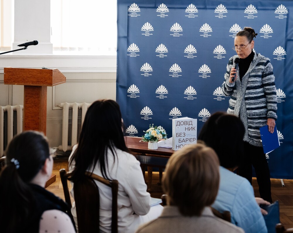 З вітальним словом до учасників заходу звернулася Тамара Кухарук, завідувачка відділу соціокультурної діяльності ОННБ, яка розповіла про здійснені та заплановані ініціативи Одеської національної наукової бібліотеки, спрямовані на реалізацію Національної стратегії зі створення безбар'єрного простору в Україні на період до 2030 року.