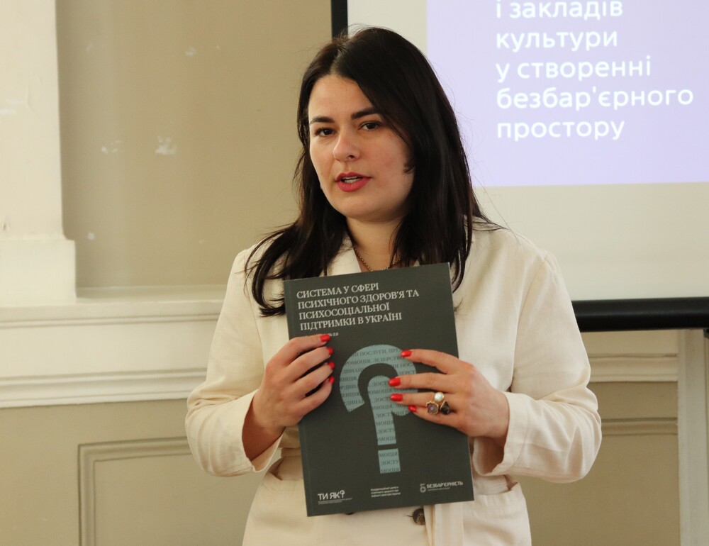 Ганна Величко поінформувала присутніх про два ключові інформаційні ресурси з питань безбар’єрної грамотності – «Довідник безбар'єрності» та «Гайд безбар'єрних подій», які є практичними інструментами для організаторів заходів і працівників культурної сфери.