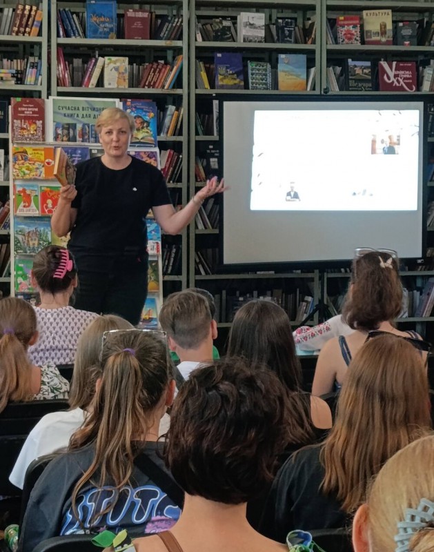 Наприкінці доповіді пані Ірина запропонувала відвідувачам цікаву вікторину з питаннями про твори для дітей одеських письменників Володимира Рутківського, Галини Могильницької, Олексія Надемлінського, Дмитра Шупти, Валерія Пузіка, Олени Хобти, Євгенії Завалій, Дмитра Журавля, Марини Забуранної, Інни Іщук та інших.