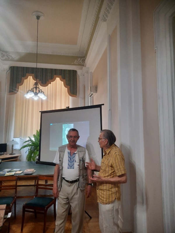 Євген Федорович Безус подякував заступнику генерального директора ОННБ з наукової роботи та інформатизації Ліні Арюпіній та заслуженому працівнику культури Ларисі Бур’ян за надані матеріали з «Газети-ракети», «Трибуни», «Тризуба» та інших, які зберігаються у фондах нашої бібліотеки.