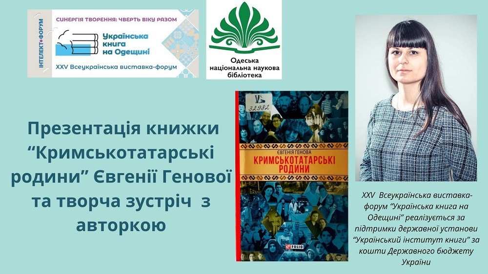 6 червня 2025 року в рамках ювілейної XXV Всеукраїнської виставки-форуму «Українська книга на Одещині» у відділі міжнародних проєктів Одеської національної наукової бібліотеки відбулася презентація книжки «Кримськотатарські родини» Євгенії Генової, кандидата філологічних наук, журналістки-розслідувальниці та правозахисниці.