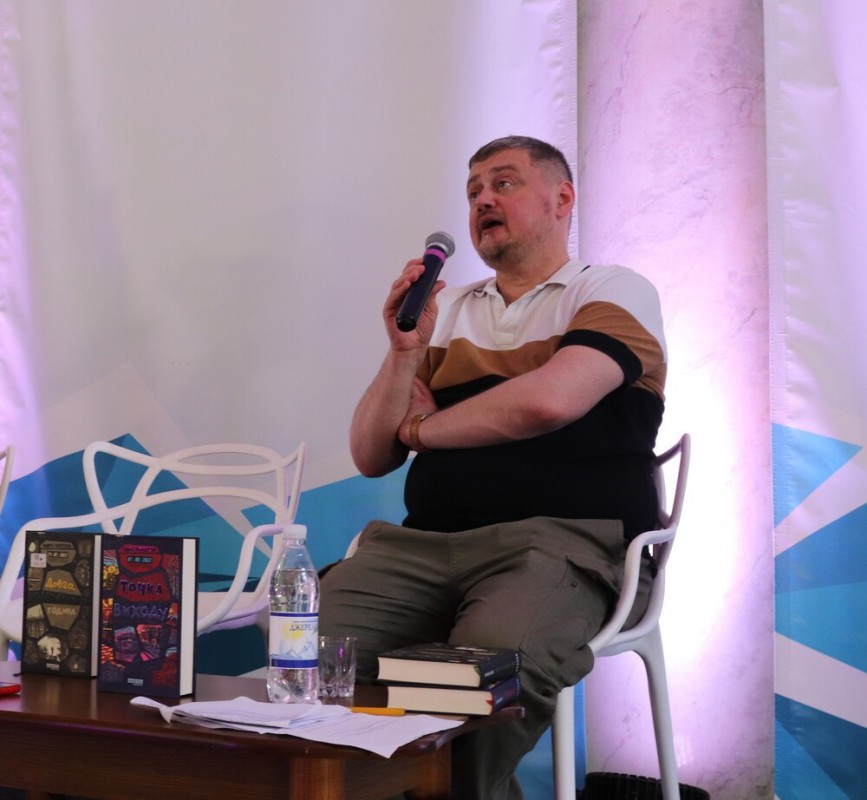 6 червня в рамках XXV Всеукраїнської виставки-форуму «Українська книга на Одещині» у Одеській національній науковій бібліотеці відбулася творча зустріч з відомим українським письменником, романістом, майстром детективного жанру, автором низки кіносценаріїв і телевізійних проєктів, журналістом – Андрієм Кокотюхою та презентація його нового роману «Точка виходу» (Харків : Фабула, 2025).
