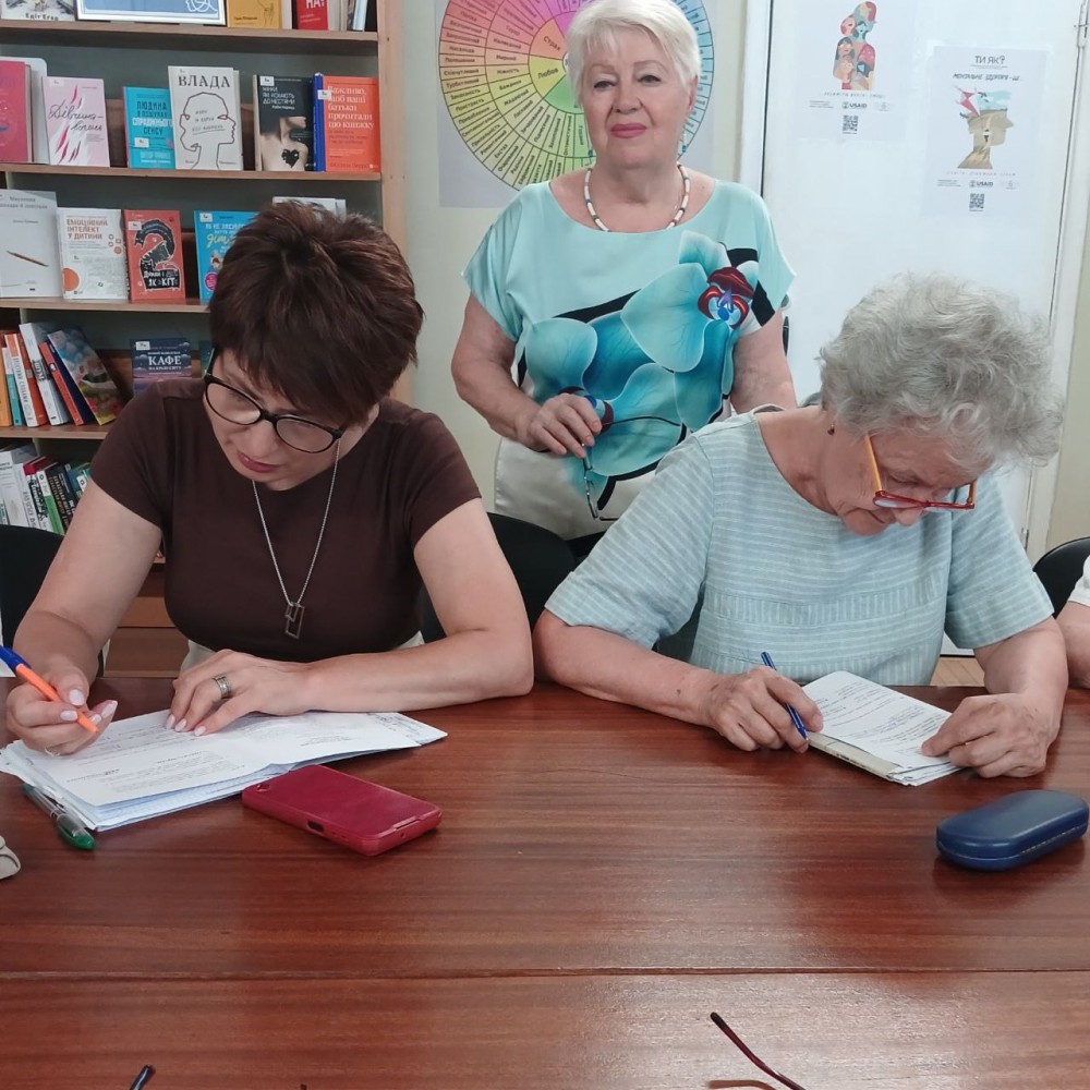 Мовознавча частина заняття була присвячена новій для слухачів темі «Фемінітиви» і з виконанням тестових завдань з квестами, які викликали у слухачів надзвичайне пожвавлення.