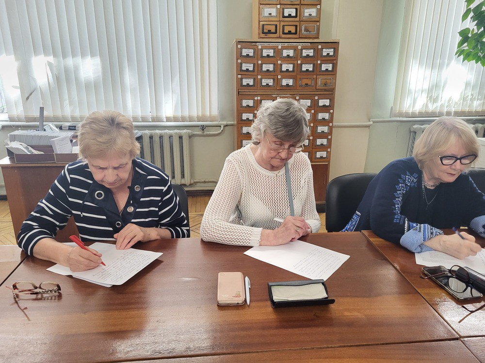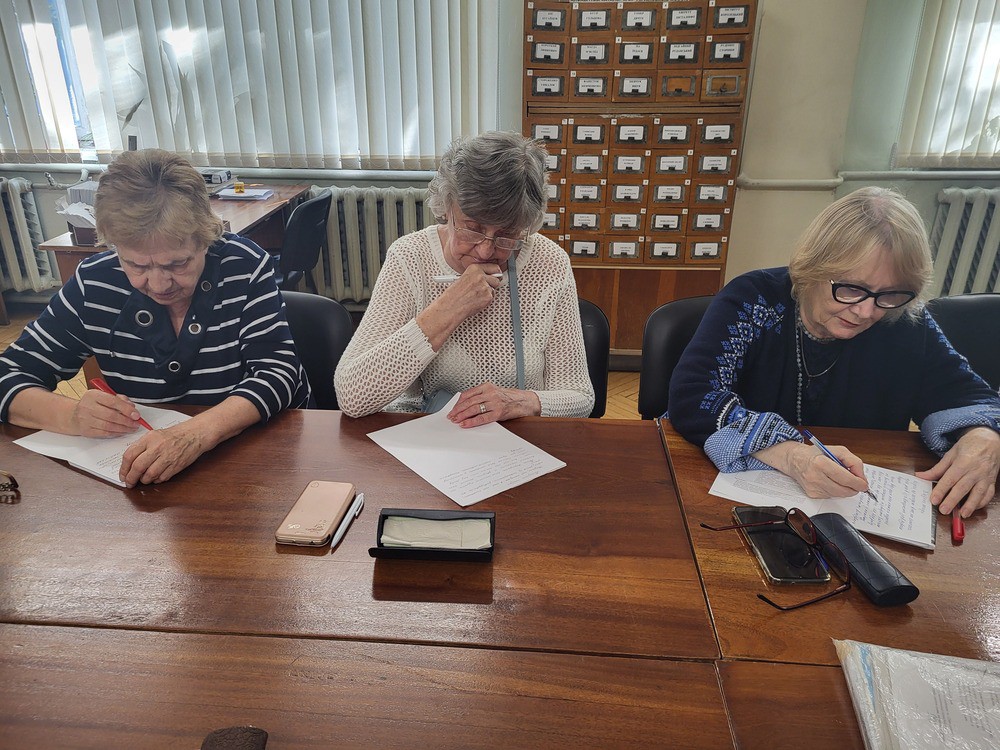 Учасники написали диктант «Віщунка погоди». Робота над текстом диктанту природно перейшла у мовознавчу частину: правопис частки «не» з дієприкметниками та іншими частинами мови, подвоєння у прикметниках з наголошеними суфіксах -ан, -ян, -ен, а також уживання префіксів -роз, -без, -воз, -через. Такі вправи дали змогу поглибити знання з українського правопису, закріпивши теорію на практиці.