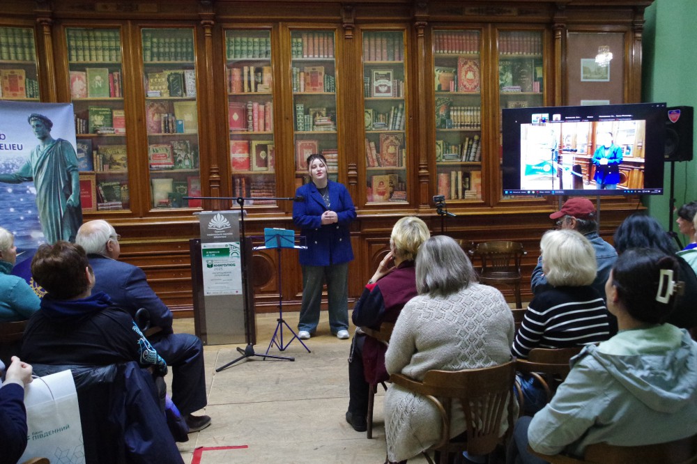 До присутніх гостей, що зібралися офлайн та онлайн, з вітальним словом звернулася генеральний директор ОННБ, заслужений працівник культури України Ірина Бірюкова: «Сьогодні учасники конкурсу, наші партнери та читачі бібліотеки – це ті, хто не здається складним обставинам, і поки наші захисники і захисниці фізично тримають лінію оборони, наполегливо підтримують інформаційний та культрний спротив тилу в часи гібридної війни. Дякую всім і кожному, хто допомагає цьому конкурсу відбутися, а насамперед громадській організації «Ротарі клубу “Одеса Рішельє”» та її активістам, які підтримують переможців матеріальними винагородами. Також величезна подяка партнерам, що підтримують конкурс призами та подарунками, як от ПРАТ «Єнні Фудз» – кавовий виробник в Одесі із давньою традицією, та ПАТ Акціонерний банк «Південний».