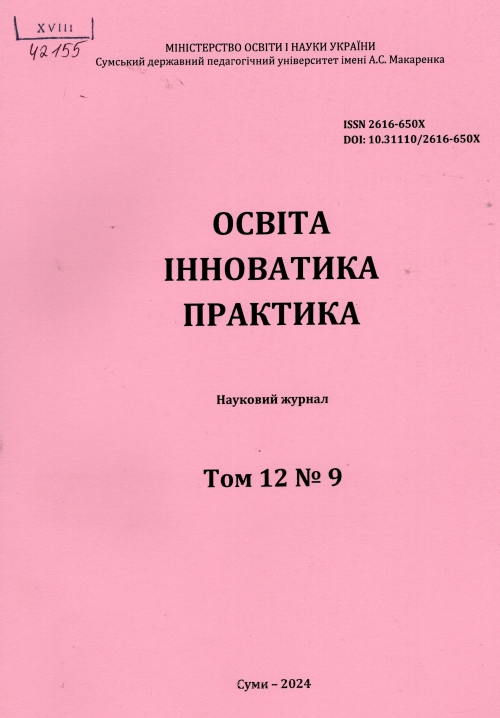 Освіта. Інноватика. Практика = Education. Innovation. Practice : наук. журн. / Засновник Сум. держ. пед. ун-т ім. А. С. Макаренка ; редкол. Оксана Володимирівна Боряк. – Суми : СумДПУ ім. А. С. Макаренка, 2024. – Т. 12, № 9. – 111 с.
