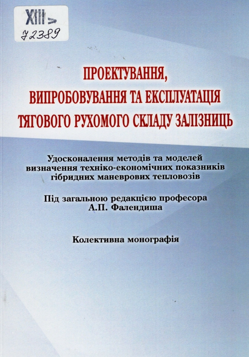 Проектування, випробовування та експлуатація тягового рухомого складу залізниць : кол. монографія / Держ. вищий навч. закл. "Приазов. держ. техн. ун-т"; за заг. ред. Анатолій Петрович Фалендиш. – Львів : Сполом, 2024. – Проєктування, випробовування та експлуатація тягового рухомого складу залізниць .