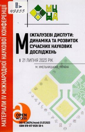Міжгалузеві диспути: динаміка та розвиток сучасних наукових досліджень : матеріали IV Міжнар. наук. конф., м. Хмельницький, Україна, 21 липня 2023 р. / Міжнародний центр наукових досліджень ; гол. оргком. Н. Р. Рабей. – Вінниця : Європейська наукова платформа, 2023. – 207 с. : іл., табл., QR-коди.