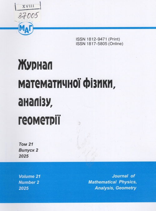 Журнал математичної фізики, аналізу, геометрії = Journal of Mathematical Physics, Analysis, Geometry : щокварт. наук. журн. / Засновник НАН України. Фіз.-техн. ін-т низьких температур ім. Б. І. Вєркіна ; гол. ред. Л. А. Пастур. – Харків : ФТІНТ ім. Б. І. Вєркіна НАН України, 2025. – Т. 21, вип. 2 .