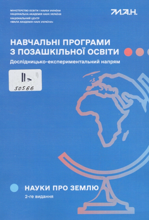 Навчальні програми з позашкільної освіти : дослід.-експеримент. напрям. Науки про Землю / Світлана Миколаївна Бабійчук, Валентин Андрійович Ворончук, Олександр Вікторович Гордієнко, Станіслав Олексійович Довгий, Дмитро Костянтинович Жданов ; Нац. акад. наук України, Нац. центр "Мала академія наук України" ; редкол. А. І. Грітчина, Наталія Олександрівна Халупко ; вступ А. І. Грітчина. – 2-ге вид. – Київ : Нац. центр "Мала академія наук України", 2024. – 276 с. : табл.