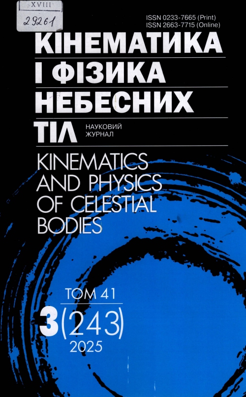 Кінематика і фізика небесних тіл = Kinematics and physics of celestial bodies = Кинематика и физика небесных тел : наук. журн. / Засновник НАН України, Головна астроном. Обсерваторія ; гол. ред. Я. С. Яцків. – Київ : Академпериодика, 2025. – Т. 41, № 3 (243). – 78 с.