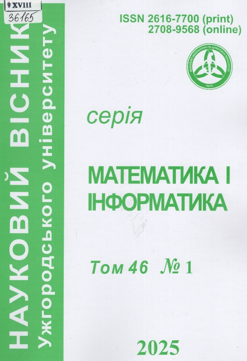 Науковий вісник Ужгородського університету. Серія: Математика і інформатика : зб. наук. пр. / Засновник Ужгород. нац. ун-т ; гол. ред. М. М. Маляр. – Ужгород : УжНУ, 2025. – Т. 46, № 1. – 304 с.