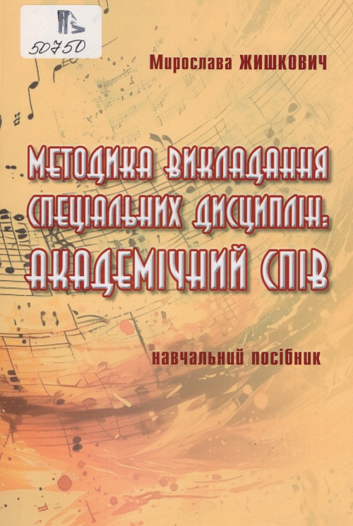 Жишкович М. А. Методика викладання спеціальних дисциплін: академічний спів : навч. посіб. / Мирослава Андріївна Жишкович ; Львів. нац. муз. акад. імені М. В. Лисенка, Каф. академ. співу. – Львів : Растр-7, 2024. – 121 с. : іл., схеми.