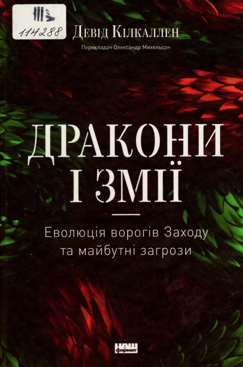 Кілкаллен Девід. Дракони і змії : еволюція ворогів Заходу та майбутні загрози : пер. с англ. / Девід Кілкаллен ; пер. Олександр Михельсон. – Київ : Наш Формат, 2024. – 354, [1] с.
