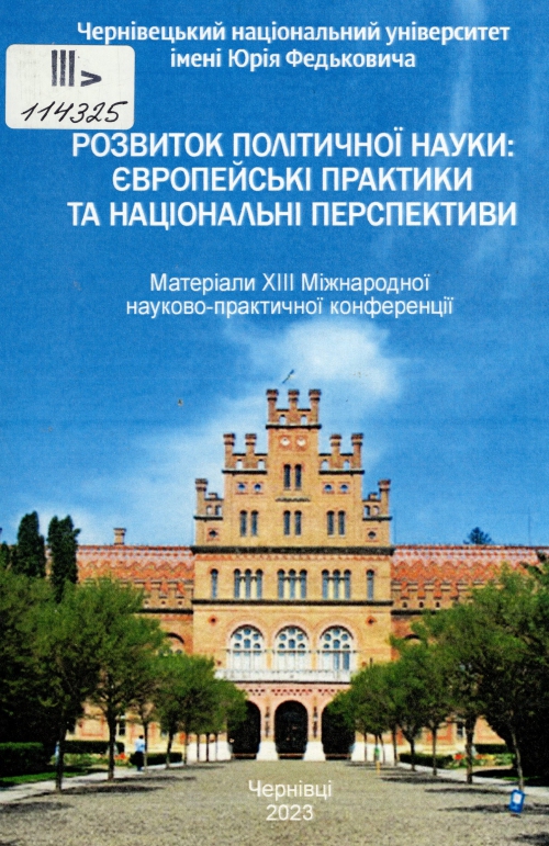 Розвиток політичної науки: європейські практики та національні перспективи : матеріали XIII Міжнародної наукової конференції, 14 червня 2023 р., м. Чернівці / Чернів. нац. ун-т ім. Ю. Федьковича, НДІ Європ. інтеграції та регіон. досліджень, Ун-т ім. Марії Склодовської-Кюрі ; редкол. А. М. Круглашов, Н. Ю. Ротар, В. І. Бурдяк. – Чернівці : Технодрук, 2023. – 303 с. : табл.